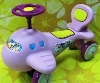 Приводится в движение путем отталкивания малыша ногами от поверхности.