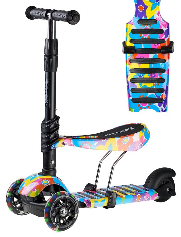 Самокат Farfello 2 в 1 принт цветы, передние колеса с подстветкой арт.WX-3-in-1