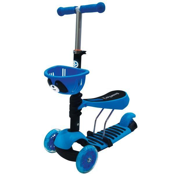 Этот яркий самокат привлекает внимание детей необычной конструкцией и дизайном, ведь он легко заменит крохе еще и каталку.
