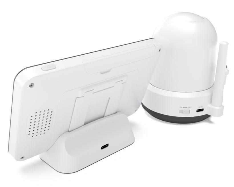 Питание камеры (детского блока) возможно от сети или от обычного портативного аккумулятора (Power Bank, объём 10 000 mAh обеспечивает автономную работу камеры до 24 часов, продолжительность зависит от режима и интенсивности использования, разъём питания камеры USB Type-C, для подключения к портативному аккумулятору вам потребуется кабель с разъемом USB Type-C со стороны камеры);