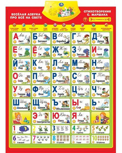 ГОВОРЯЩИЙ ПЛАКАТ "УМКА" АЗБУКА С.МАРШАК, РУССИФИЦ., 10 ОБУЧАЮЩ. ПРОГРАММ В РУСС. КОР. HX0251-R7