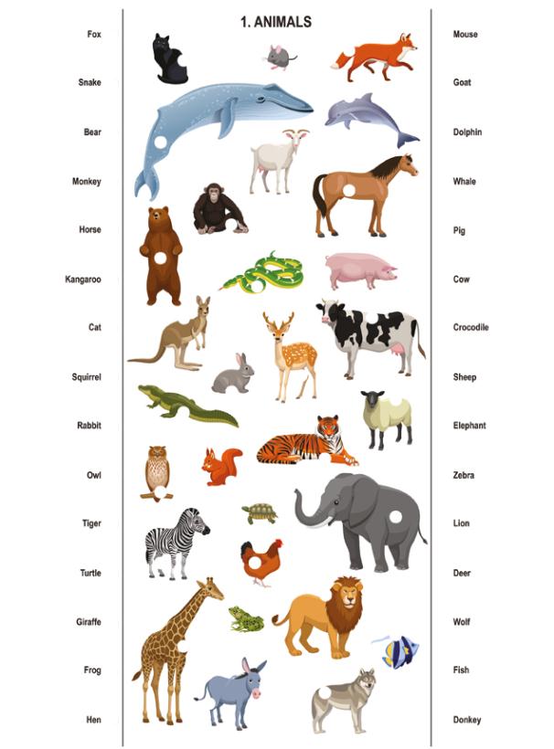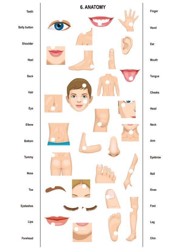 Это обучающее пособие поможет детям выучить английские названия животных, цветов, частей тела человека, продуктов.