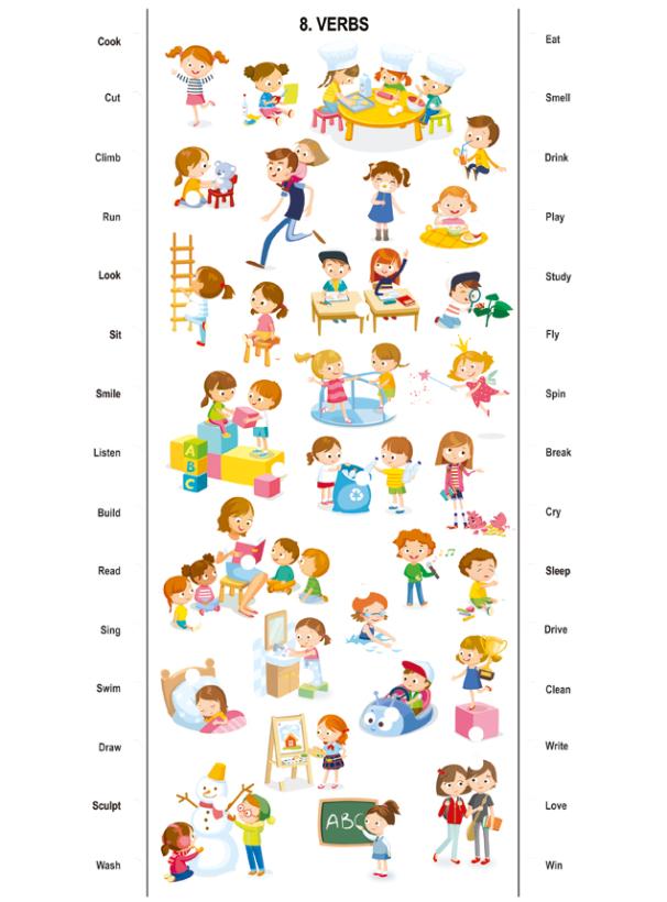 Кроме того, игра позволит выучить глаголы, научиться находить противоположности и определять время.