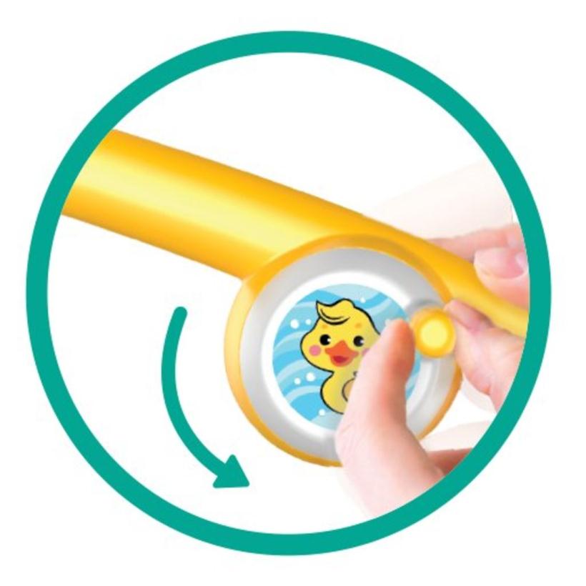 Для этого утёнка нужно погрузить в воду, пока вовнутрь него не наберётся вода, а затем вытащить его наружу и нажимать колпачок у него на голове – тогда из клювика утёнка выстрелит тоненькая водяная струйка!