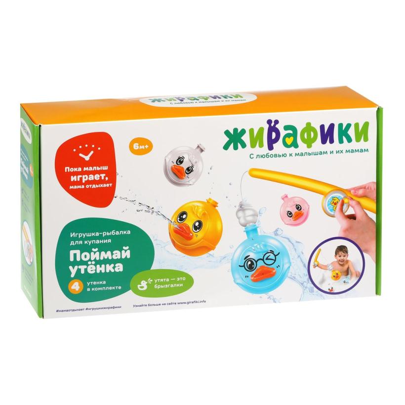 Игрушка-рыбалка для купания "Поймай утёнка" 4 утенка-брызгалки, плавают по воде арт.644522