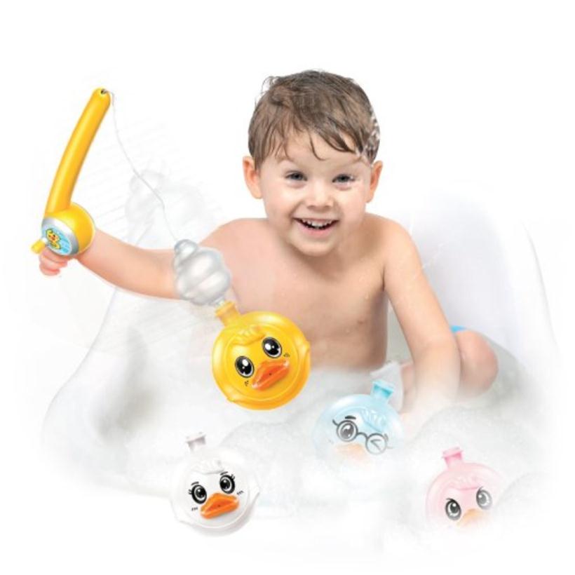 Забавные утята, которых малышу предстоит поймать при помощи удочки, держатся на воде и не тонут.