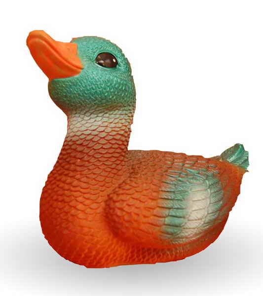 - Игрушка напоминает яркого селезня с разноцветными пёрышками, клювом и сложенными крылышками, который поможет разнообразить игры детей, а особенно в ванной во время купания.