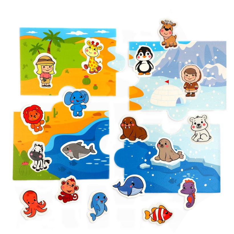 Стикеры для купания Кто где живет, в наборе игровое поле-пазл и 18 стикеров арт.939828