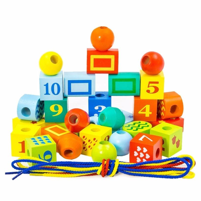 Конструктор деревянный Шнуровочка с цифрами 30 деталей