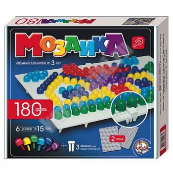 Комплектация: детали мозаики - 180 шт. (6 цветов), поле белое 90*90 фишек