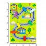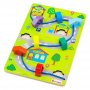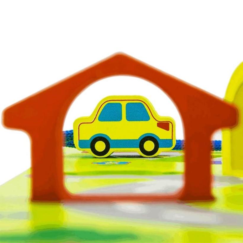 Задача малыша — провезти машинку на шнурке по извилистой дороге от гаража до пункта назначения.