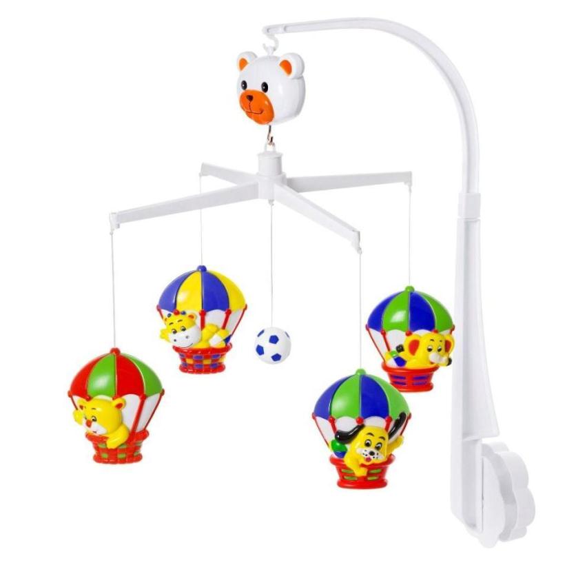 Мобиль "На воздушном шаре" 21096 Веселые зверушки на воздушных шарах развлекут малыша в кроватке, научат его распознавать цвета, формы, а приятная мелодия успокоит кроху. Необходимо повернуть ключик по часовой стрелке, чтобы мобиль начал вращаться и проигрывать мелодию. - Мобиль легко собирается и устанавливается. - Имеет устойчивое крепление, не требует батареек. - Вращается и проигрывает мелодию, если повернуть ключик по часовой стрелке. - Изготовлен из безопасного пластика. Срок годности - 10 лет, срок службы - 3 года.