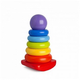 Эта пирамидка объединяет в себе две игрушки: классическую пирамидку с колечками и забавную качалку.