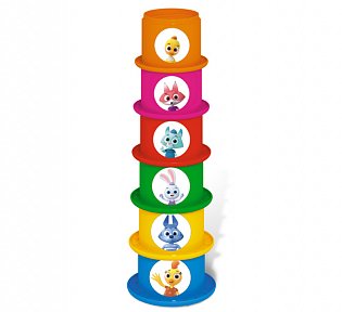 Это яркая и увлекательная пирамидка, в виде разноцветных стаканчиков, на которых изображены любимые образы героев мультфильма.