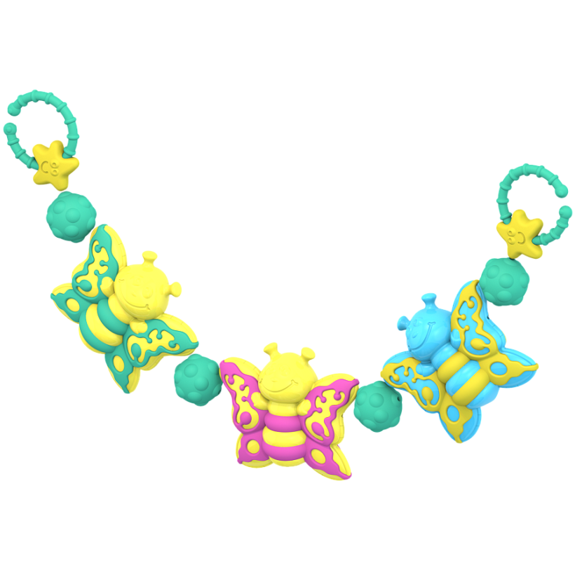 Универсальные крепежные кольца позволяют использовать подвеску как съемную, подвешивая ее над кроваткой, коляской или развивающим ковриком.