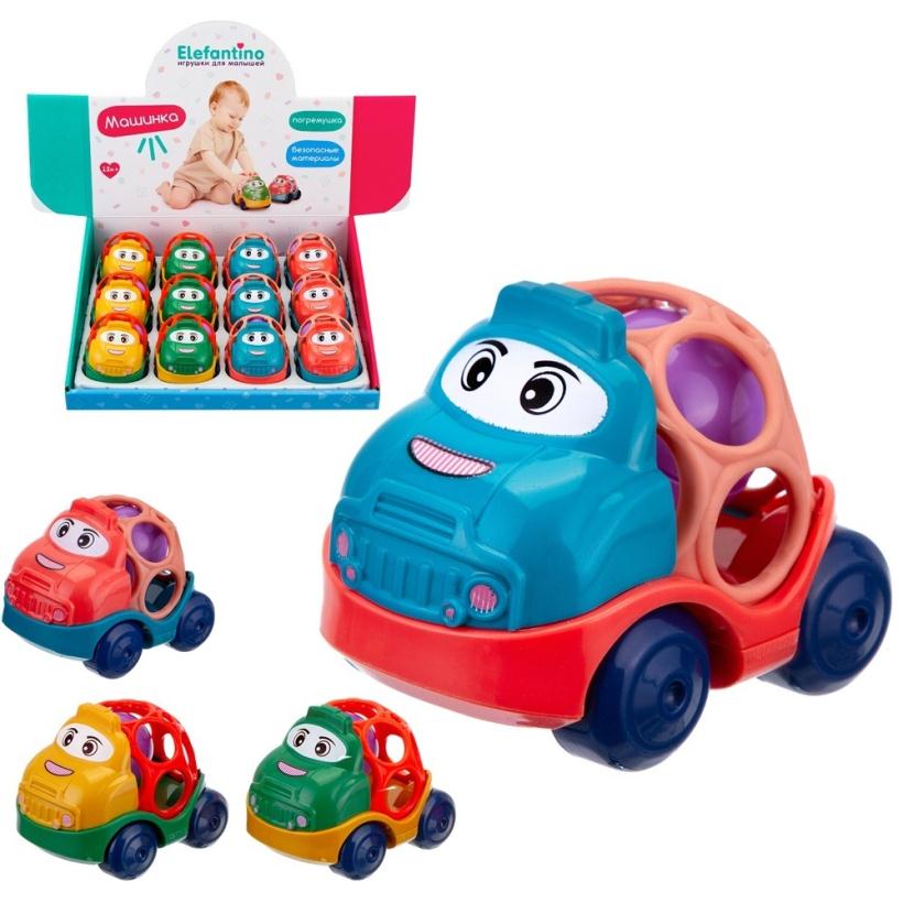 Пластиковая машинка с погремушкой в мягком защитном корпусе в задней части и пластиковыми колесами — идеальный подарок для маленьких автолюбителей. На передней части машинки нанесена забавная улыбающаяся мордочка, что делает игрушку еще боле привлекательной для ребенка. Игрушка выполнена из безопасных материалов, также ее можно мыть. В коробке 12 машинок (4 ярких цвета).