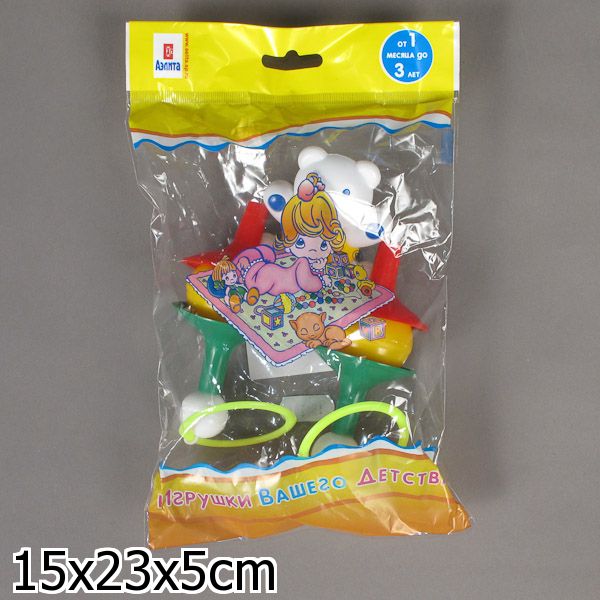 Небольшая красочная погремушка в виде мишки-штангиста для самых маленьких. Снабжена удобными кольцами. Игрушку можно использовать для игры с малышом дома и взять с собой на прогулку. Малыш может играть самостоятельно или вместе с мамой. Развивает хватательный рефлекс и координацию движений малыша. Изготовлена из безопасной для детей пластмассы, не имеет острых углов. Игрушка может использоваться в качестве подвески на коляску.
