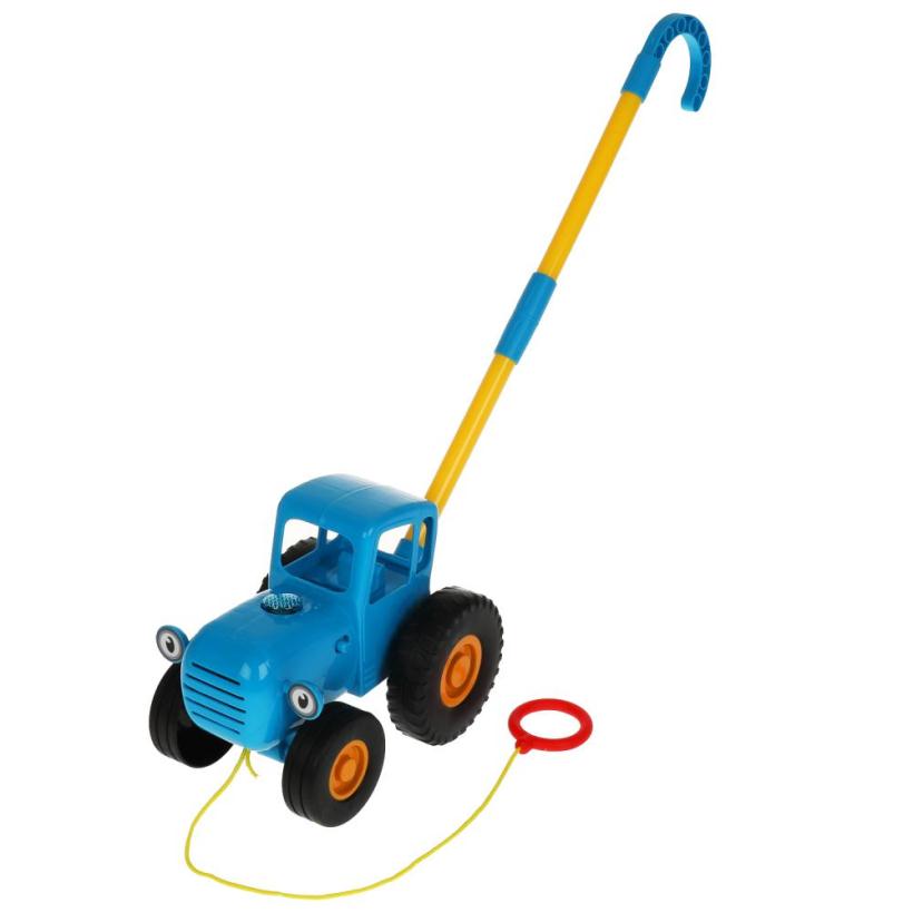 Каталка Синий трактор с палкой, 9 песен, свет, палка и веревка для катания арт.HT826-R