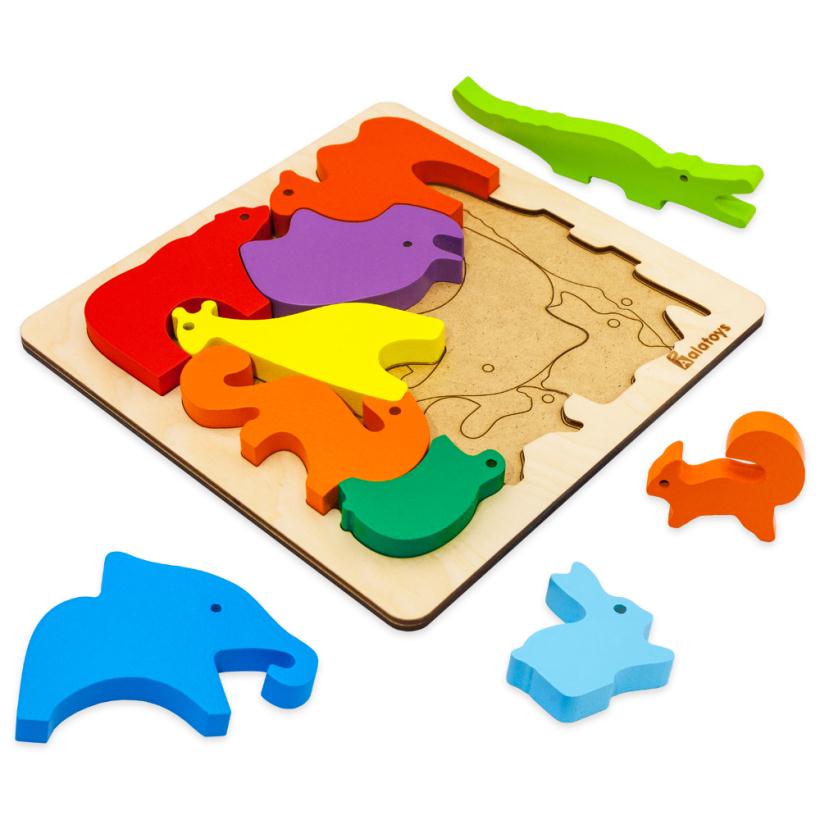 Простые фигурки позволяют познакомить ребёнка с силуэтами животных, развивают пространственное мышление и мелкую моторику рук.