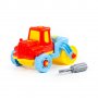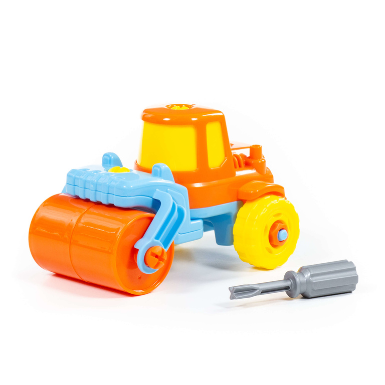 Комплект: детали конструктора и игрушечная отвертка для создания модели дорожного катка.