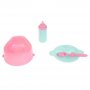 Комплектация: пупс, тарелка с ложкой, бутылочка для кормления, горшок.
