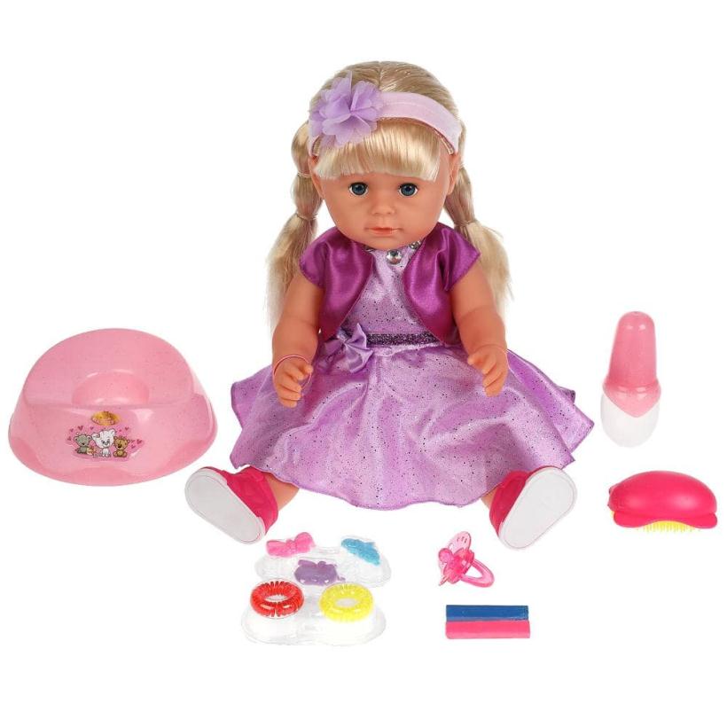 Пупс "Карапуз" Танюша 45 см в платье, пьет, писает, плачет, мелок, 8 аксессуаров