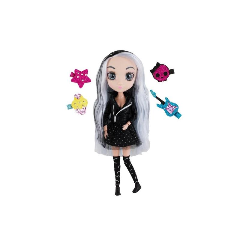 - В комплекте предусмотрены аксессуары в виде заколок для куклы и ее хозяйки в виде черепа, гитары и звезд. Оригинальные аксессуары позволят юной моднице придать своему образу индивидуальность.