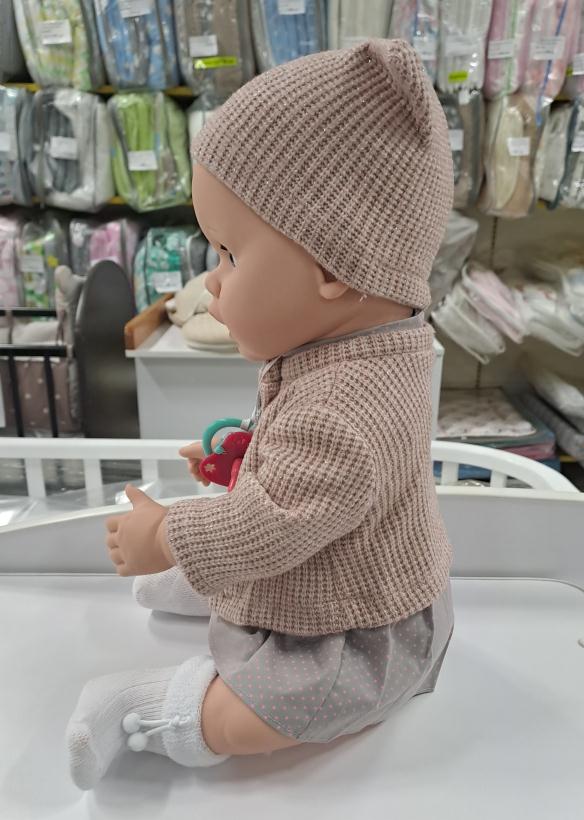 В комплект одежды куклы Вита 3 входят: платье, шапочка, носки, кофточка.