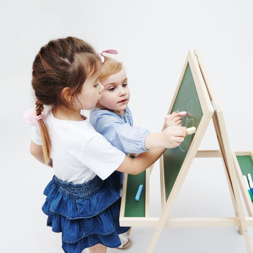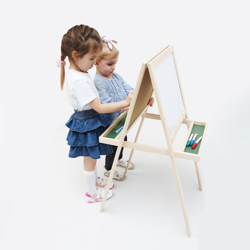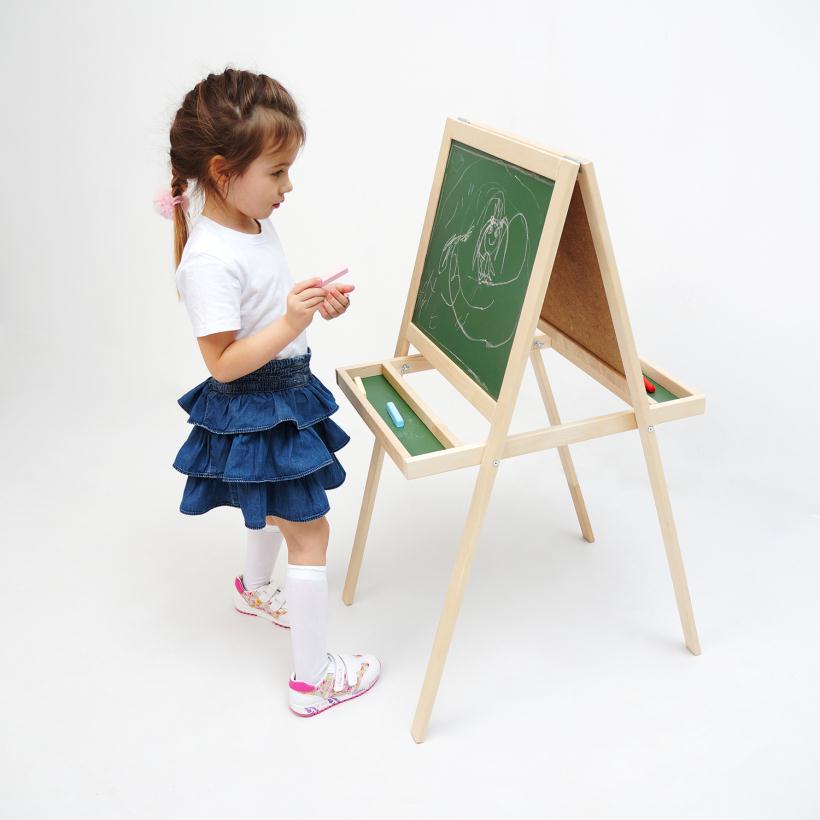Такая напольная магнитно-маркерная двухсторонняя доска понравится любому ребёнку, который сможет на ней не только рисовать, но и изучать цифры и буквы.