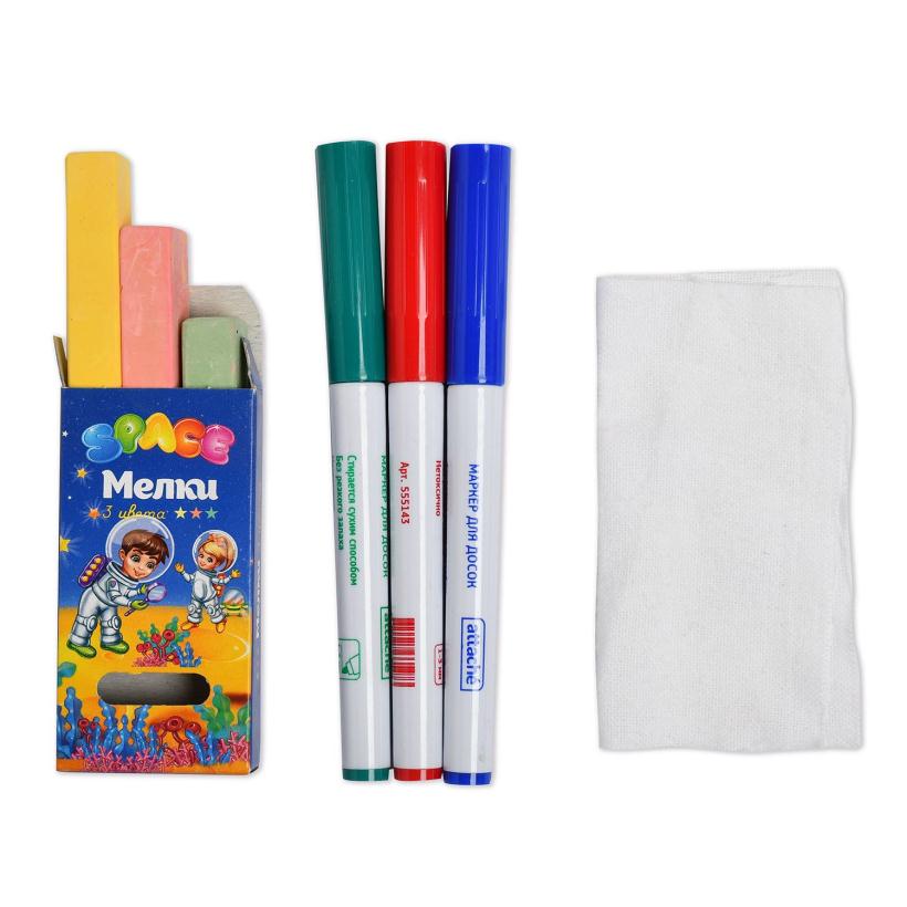 3. Белая металлическая (магнитная) сторона используется для работы на ней маркерами. А вот на зелёной стороне можно также писать и рисовать, но только мелом.