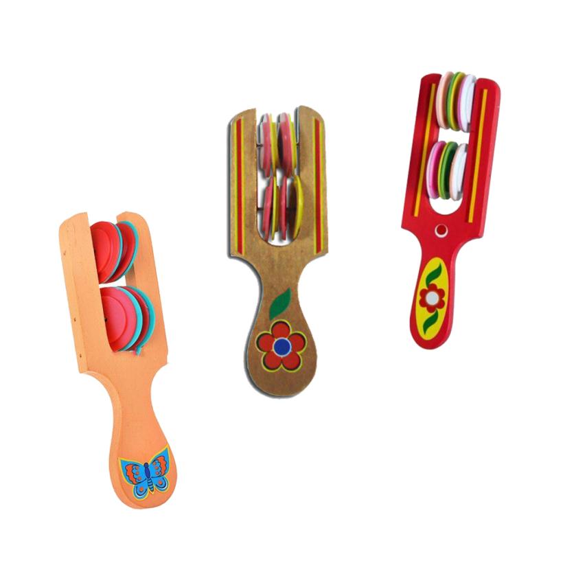 Деревянная румба – оригинальный ударный инструмент, который непременно понравится детям. Потряхивая румбой, дети смогут извлекать тонкий звук, а развивая чувство ритма, смогут наигрывать различные музыкальные мелодии. Игрушка имеет привлекательный дизайн, корпус выполнен из натурального дерева, а тарелочки из качественного пластика.