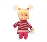 Мягкая игрушка в виде обезьянки Минки очаровательна, как и сама героиня мультфильма. У нее большая голова, украшенная двумя забавными хвостиками, и очень большие глаза. Она приятна на ощупь и очень обнимательна.
