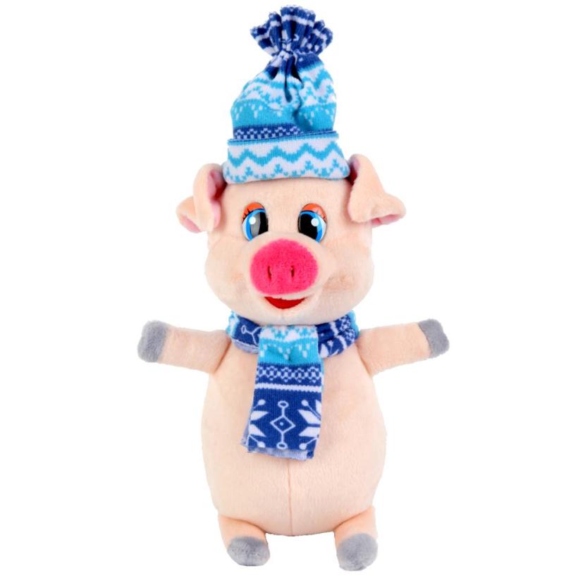 Игрушка мягкая Поросенок в синем шарфе и шапке 17см, Играем вместе
