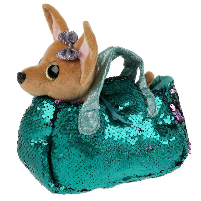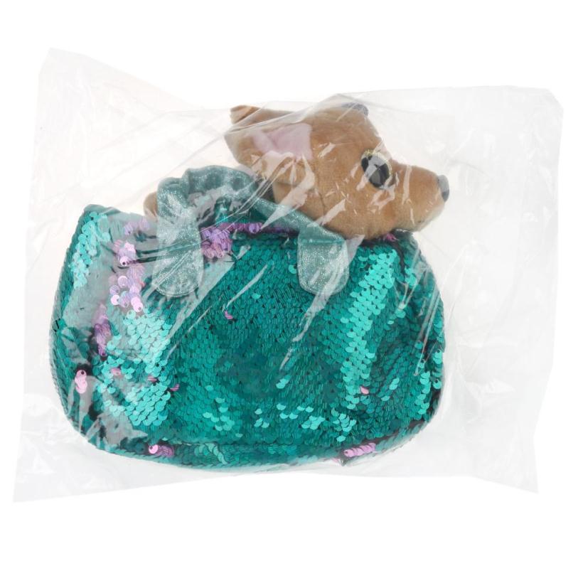Мягкая игрушка "Мой питомец" Собачка 15 см в бирюзовой сумочке из пайеток