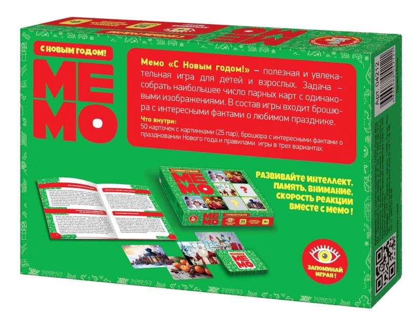 Настольная игра МЕМО «С Новым годом!» расширяет кругозор, развивает интеллект, внимание, скорость реакции и тренирует память.