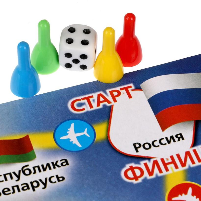 В процессе этой занимательной игры участникам нужно бросать кубик и передвигать свои фишки по игровому полю на выпавшее количество ходов. В зависимости от поля, на котором остановится фишка, игрокам предстоит выполнять разные действия: называть страну и цвета её флага, проходить вперёд по зелёной стрелке, возвращаться назад по красной, пропускать ход, бросать кубик ещё раз, а также выполнять интересные задания.