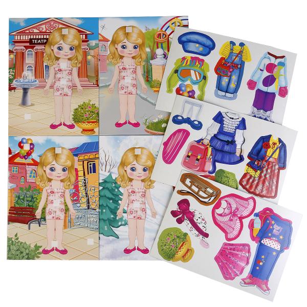 Набор состоит из 4 карточек и 16 вырезанных предметов одежды и аксессуаров.