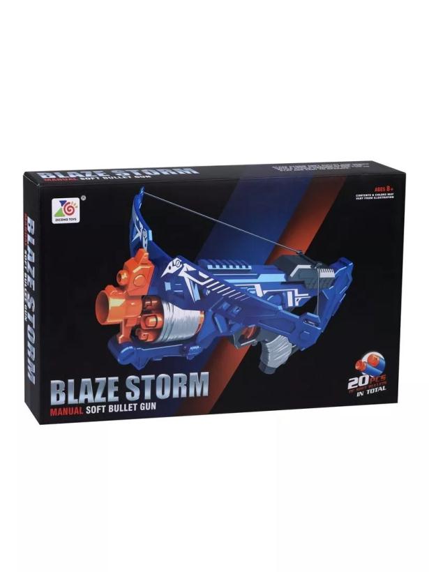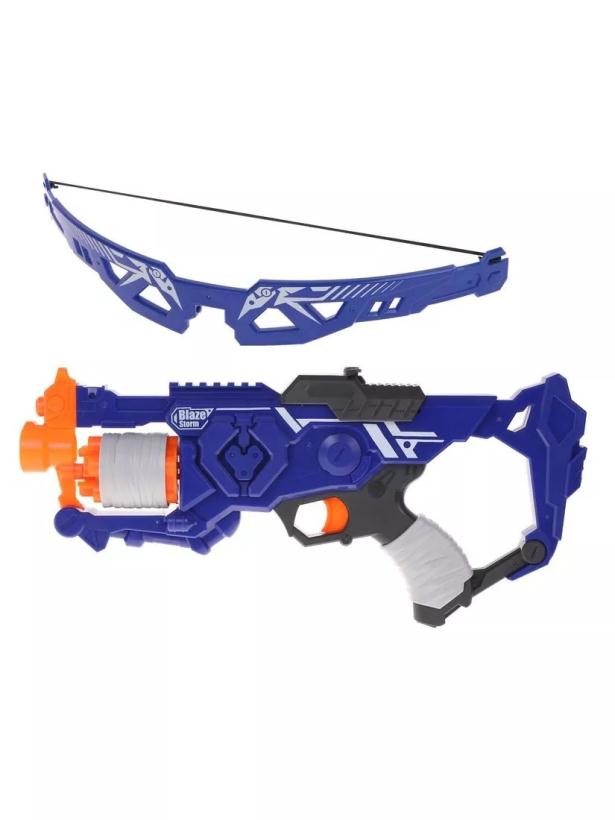 Бластер в форме арбалета. Для выстрела ребенку нужно заполнить барабан пульками.