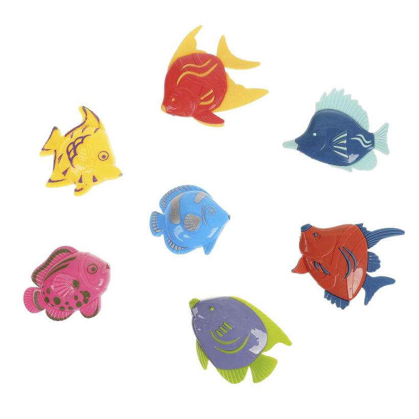 С помощью этого яркого набора ребёнок сможет самостоятельно заняться рыбной ловлей. Играть можно прямо в ванной, набрав в неё воды. Удобная удочка с катушкой, регулирующей леску, легко захватывает разноцветных рыбок при помощи магнита, а сачок поможет вытащить улов. Прекрасная игрушка, чтобы сделать купание веселее или развлечь ребёнка на отдыхе.