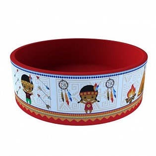 Сухой бассейн «Индейцы» красного цвета, дизайн содержит орнаменты и веселых персонажей.