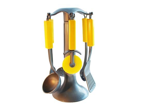 Комплект: подставка для приборов, шумовка, половник, лапшеловка, лопатка, пицца-нож, лопатка для соуса.