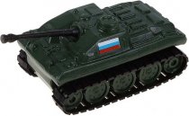 Управлять танком ребенок может как по гладкому полу, так и по песку. Игрушка имеет вращающуюся башню и рельефные гусеницы.