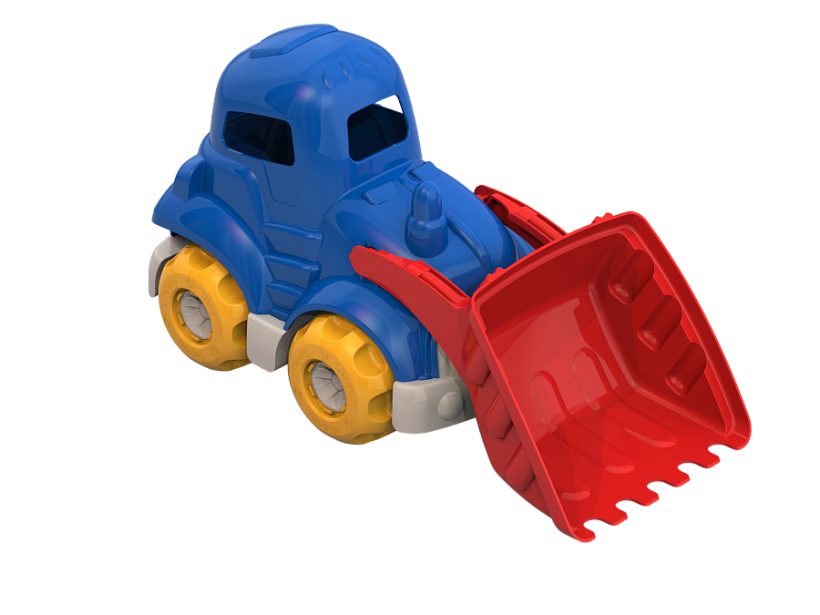 Многофункциональная машинка для игры в песочнице и дома оснащена подвижным грейдером, который с легкостью расчистит площадку для строительства.
