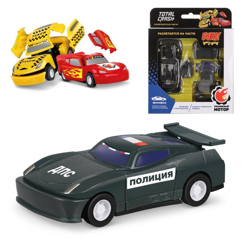 Машина Total Crash Полиция ДПС инерционная, при столкновении разлетается на части, черная
