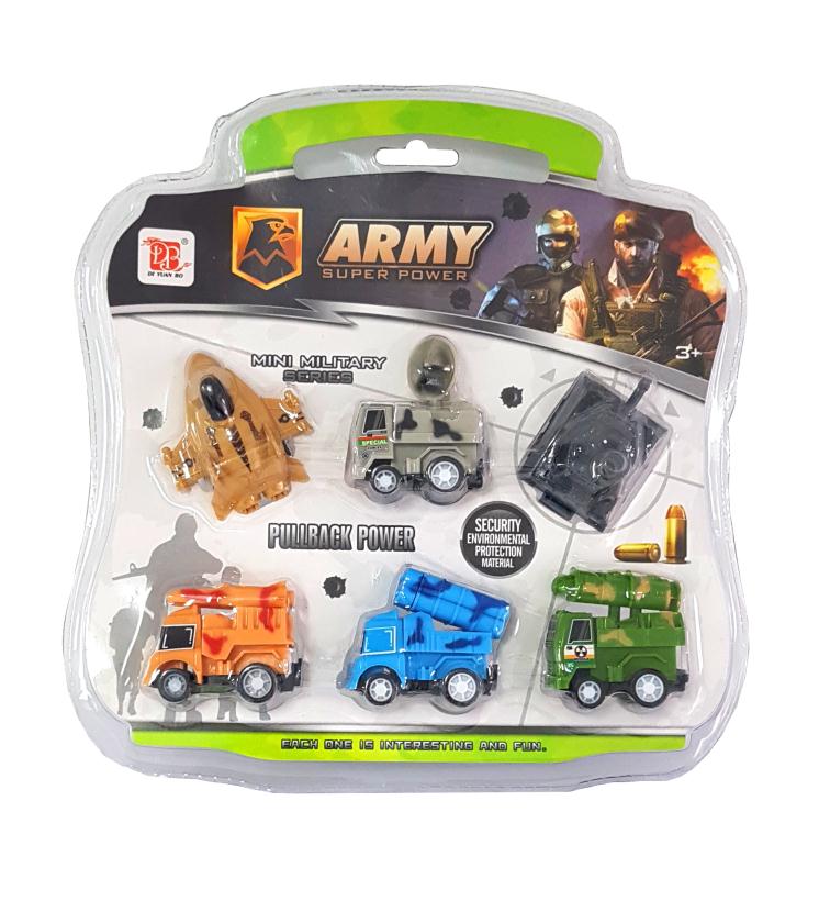 Игровой набор из шести миниатюрных машинок, с которыми малыш сможет почувствовать себя настоящим водителем военной автотехники!