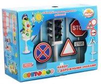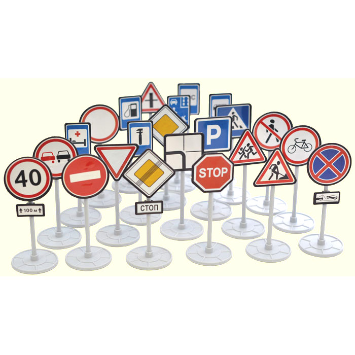 Набор состоит из двадцати трех пластиковых дорожных знаков.
