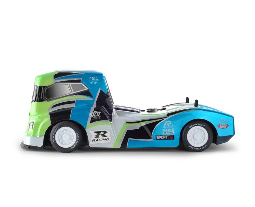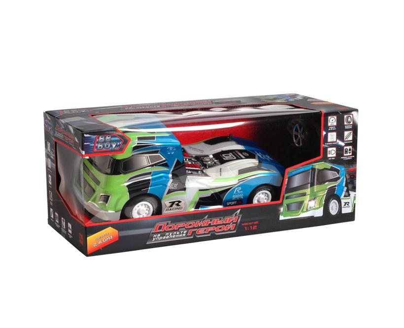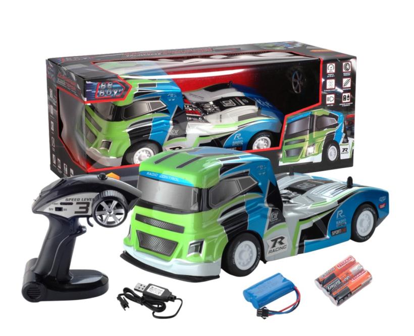 Движение во всех направлениях, скорость до 25 км/ч. 3 режима скорости, противоударный корпус, резиновые покрышки, амортизаторы, свет фар, цвет: синий, М1:12, в коробке 49*19*18 см.