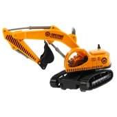 - Кабина эвакуатора изготовлена из прочного металла, а кузов и экскаватор – из пластика высокого качества, который сертифицирован для производства изделий для детей и окрашен стойкими безопасными красителями насыщенных оттенков.