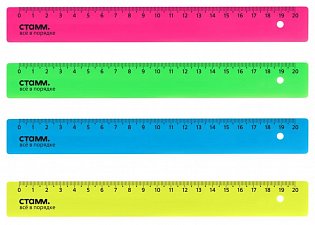 Линейка СТАММ Neon – отличный помощник для создания ровных линий. Размер товара – 20 см, ширина – 26 мм. Изделие имеет прочный и лёгкий корпус, безопасные закруглённые края и чёткую контрастную миллиметровую шкалу. Товар представлен в ярких флуоресцентных цветах. • Материал: полистирол; • Цвет: ассорти.