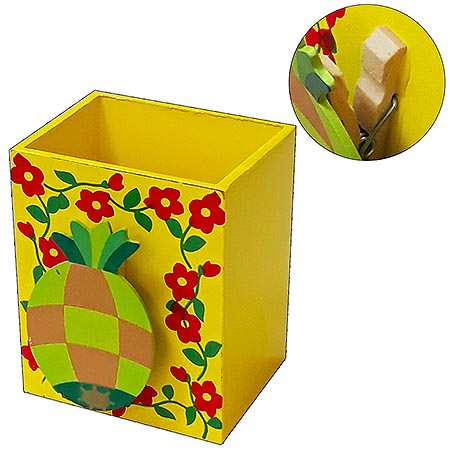 Стакан для пишущих принадлежностей KWELT Ананас, желтый, с зажимом-прищепкой арт.К-12446